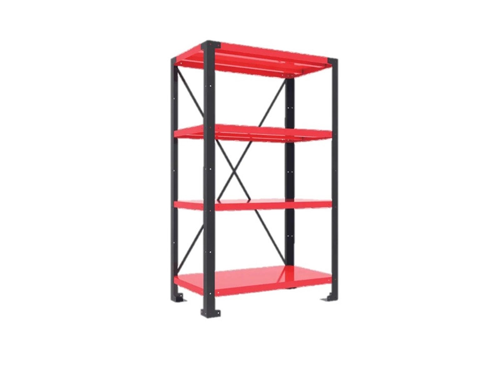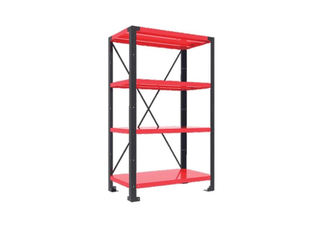 Policový regál se čtyřmi výškově nastavitelnými policemi pro rychlé a bezpečné uložení všech typů produktů a příslušenství – v dílně i ve skladu.