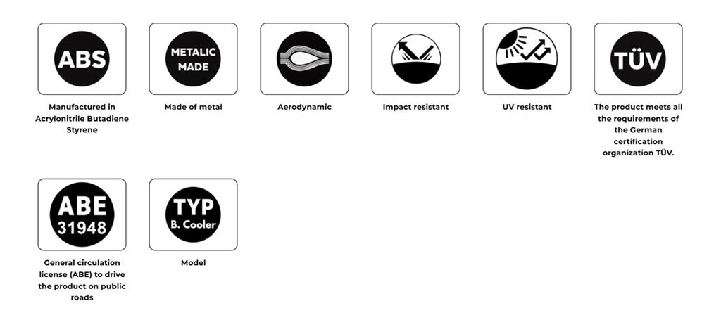 Sada se skládá ze dvou dílů z vysoce kvalitního ABS o tloušťce 3 mm, vyrobených s využitím nejmodernějších technologií lisování plastů, doplněných ocelovými nosníky, které zajišťují potřebnou tuhost, s nenápadným černým texturovaným povrchem, který se dokonale integruje s designem motocyklu.
