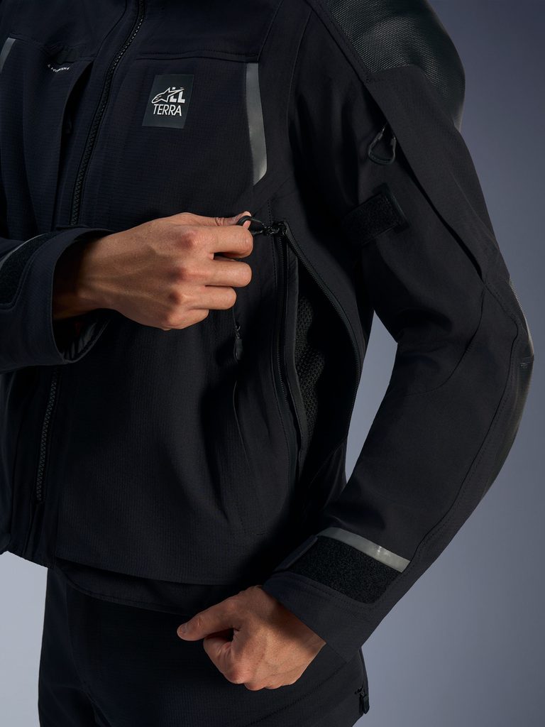 • Pokročilá ochrana proti klimatickým podmínkám: strategicky umístěné panely systému přímé ventilace s ventilačními otvory na úrovni bicepsů, torza a zadním výfukem ventilace.