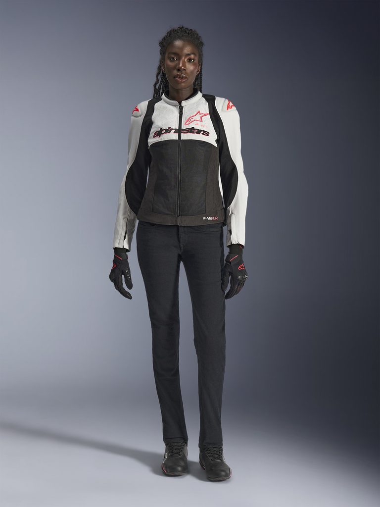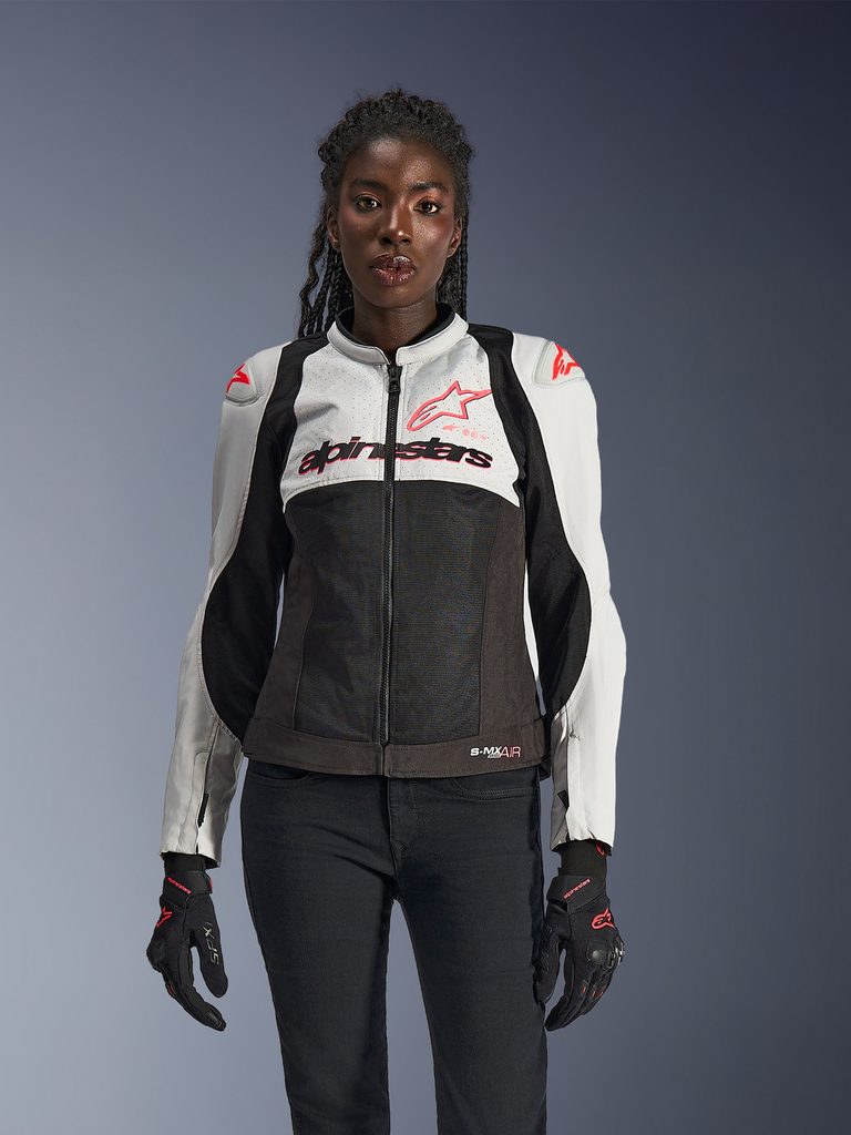 SMX AIR je krátká, textilní, sportovní bunda s vícemateriálovým uspořádáním, která disponuje technicky propracovanou síťovinou v podobě panelů v oblastech trupu, vnitřní části rukávů a zadní části bundy. Vnější část rukávů a vyztužení trupu i ramen je tvořeno z pevné a oděruodolné polyester textilie s úpletem 450D a perforacemi textilie v oblasti hrudi. Strečové panely z polyamid streče jsou umístěné v oblastech zad, ramen, po stranách a pod zadní částí límce. Strečová konstrukce poskytuje přizpůsobivý střih, vysoký stupeň volnosti pohybu a bezproblémové použití a funkci airbagových vest TECH-AIR®5. Vysoce prodyšná konstrukce této bundy je perfektní volbou pro každodenní ježdění v rámci dojezdu po městě, do práce ale i víkendové vyjížďky. Bunda SMX AIR je perfektní sportovní bunda s ochrannými prvky vhodná pro jízdu během vysokých teplot, zejména v průběhu léta. Verze v dámském střihovém provedení.