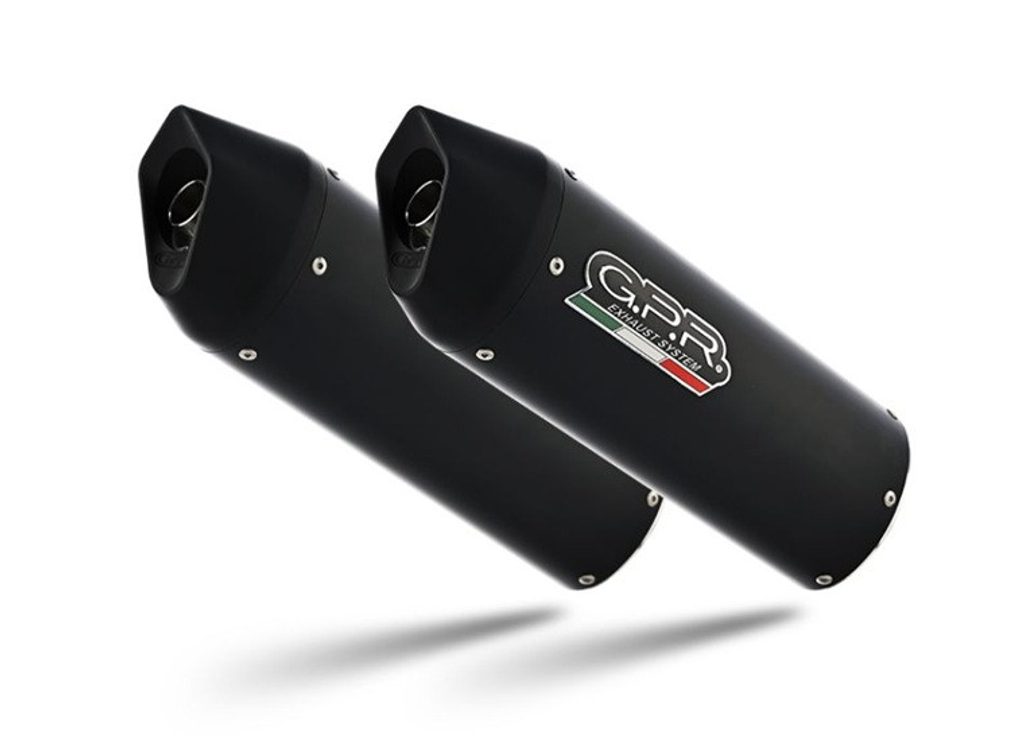 Dvojitá koncovka výfuku Slip-on GPR FURORE NERO H.49.CAT.FUNE Matná černá zahrnuje odnímatelné db killery, spojovací svody a katalyzátory