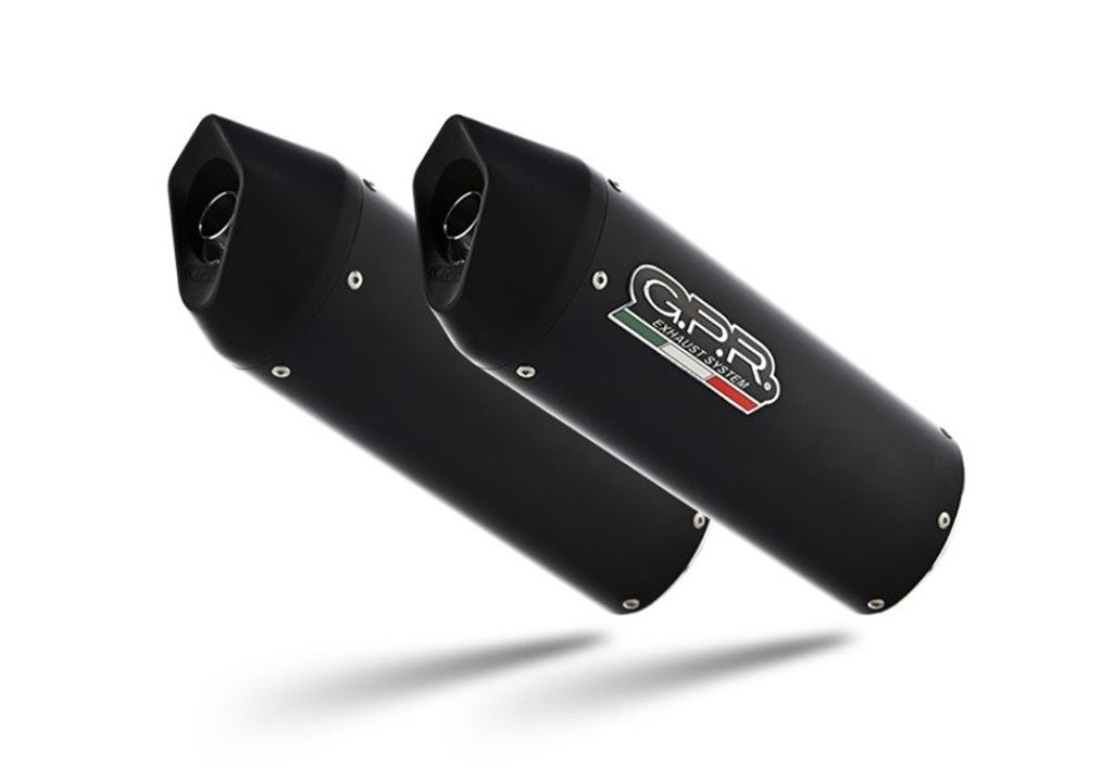 Dvojitá koncovka výfuku Slip-on GPR FURORE NERO K.163.CAT.FUNE Matná černá zahrnuje odnímatelné db killery, spojovací svody a katalyzátory