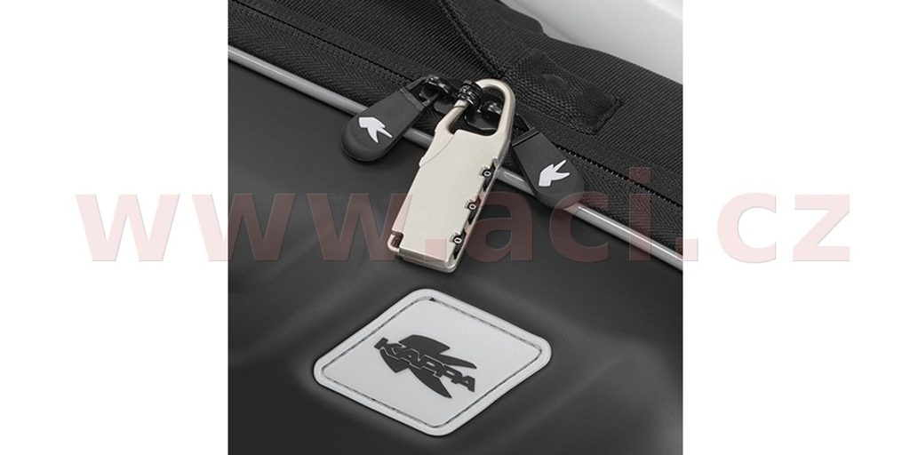 Systém uchycení EASYLOCK - zámek je součástí kufru, klíček slouží k uzamknutí kufru k trubkovému nosiči, připevněnému k motorce.