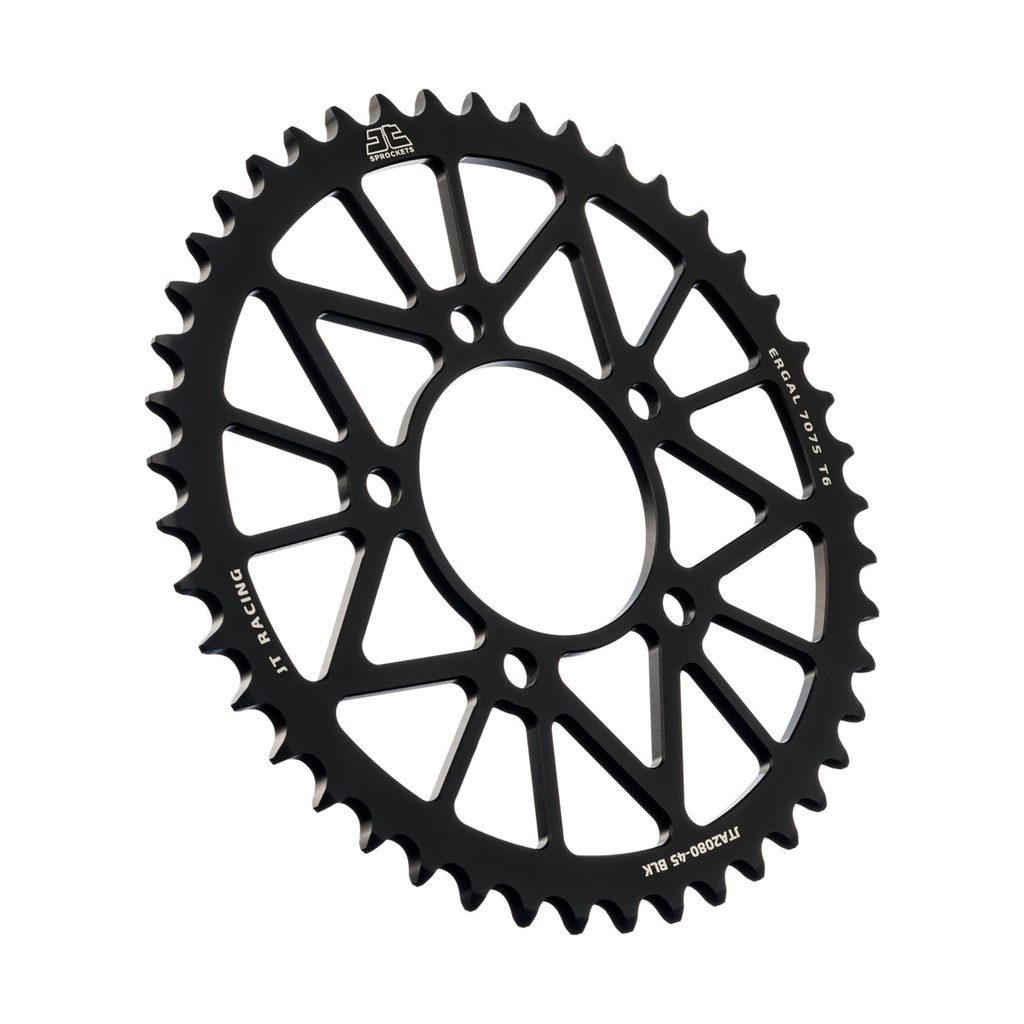 JT používá výhradně ty nejkvalitnější materiály. Pro závodní lehké rozety je to hliníková slitina letecké kvality 7075-T6, pro přední pastorky extrémně pevná slitina SCM420 (chrom-molybdenová ocel) a pro zadní ocelové rozety jako jediný výrobce používá ultra odolnou uhlíkovou ocel C49.