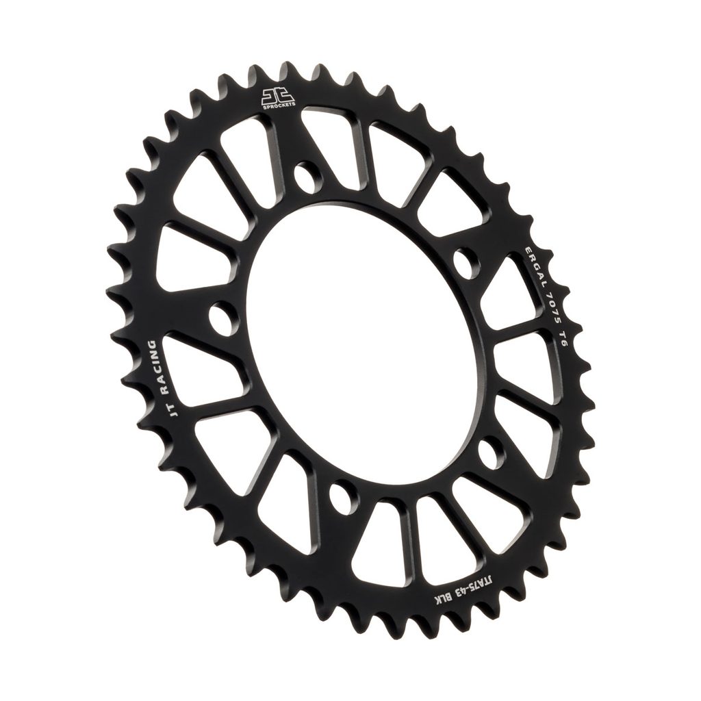 JT používá výhradně ty nejkvalitnější materiály. Pro závodní lehké rozety je to hliníková slitina letecké kvality 7075-T6, pro přední pastorky extrémně pevná slitina SCM420 (chrom-molybdenová ocel) a pro zadní ocelové rozety jako jediný výrobce používá ultra odolnou uhlíkovou ocel C49.