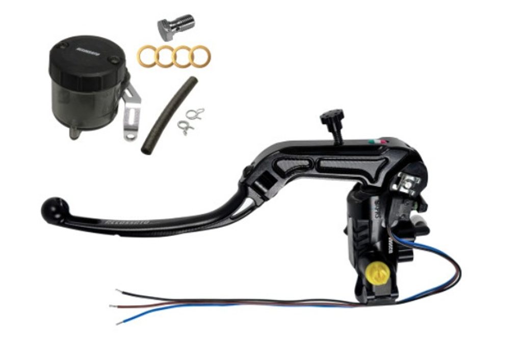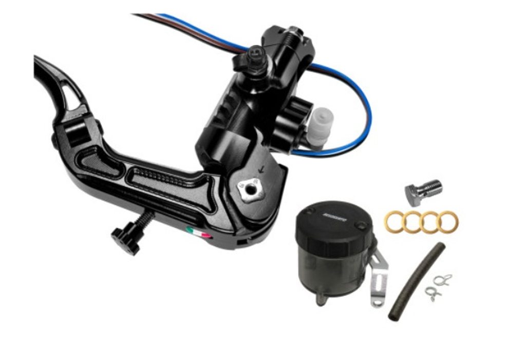 Homologovaný radiální brzdový hlavní válec ACCOSSATO RB090N se sklopnou páčkou, včetně sady brzdové nádobky