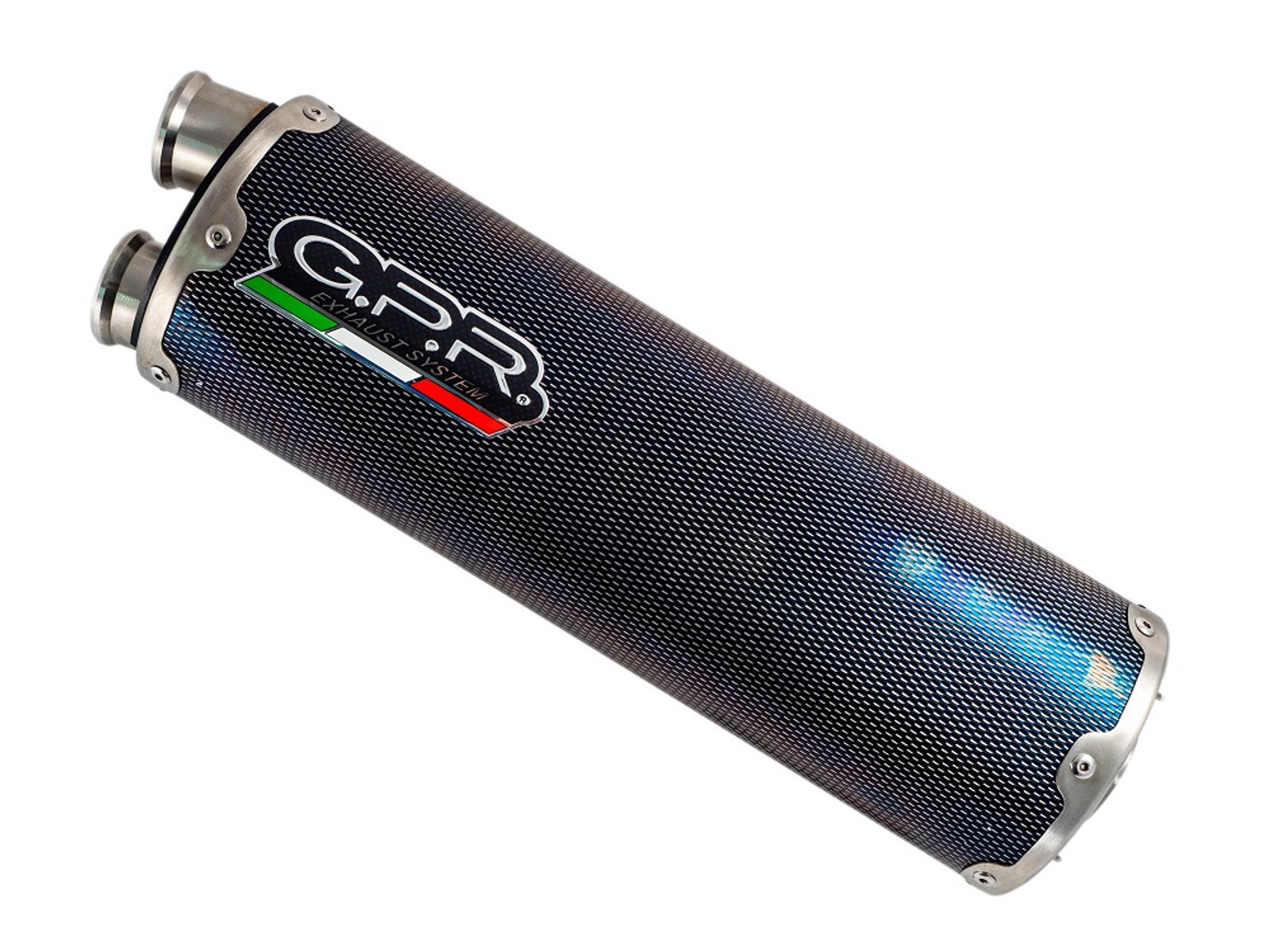 Koncovka výfuku Slip-on GPR DUAL E4.KT.105.DUAL.PO Karbonový vzhled zahrnuje spojovací svod a odnímatelný dB killer