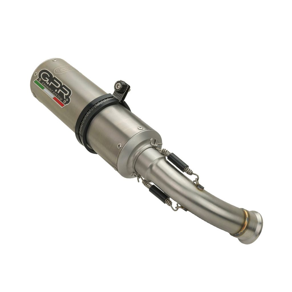 Koncovka výfuku Slip-on GPR M3 E4.D.133.CAT.M3.TN Broušený titan zahrnuje spojovací svod, odnímatelný dB killer a katalyzátor