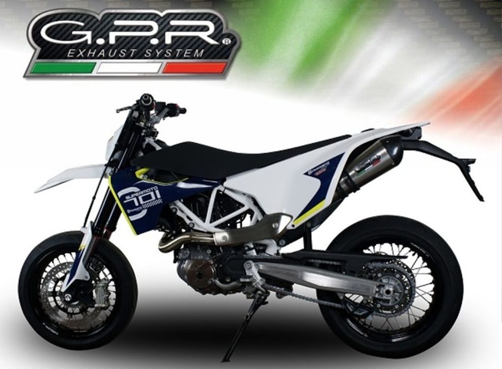 Nový GPR Grand Prix Evo Titanium - tlumič je kuželový, se speciálním tvarem, který začíná průměrem 90 mm a rozšiřuje se až na obvod 130 mm, s délkou závislou na motocyklu, pro který je určen. Má titanový plášť v přírodní barvě, černé CNC obráběné koncovky s pětiúhelníkovým výstupem a db-killer.