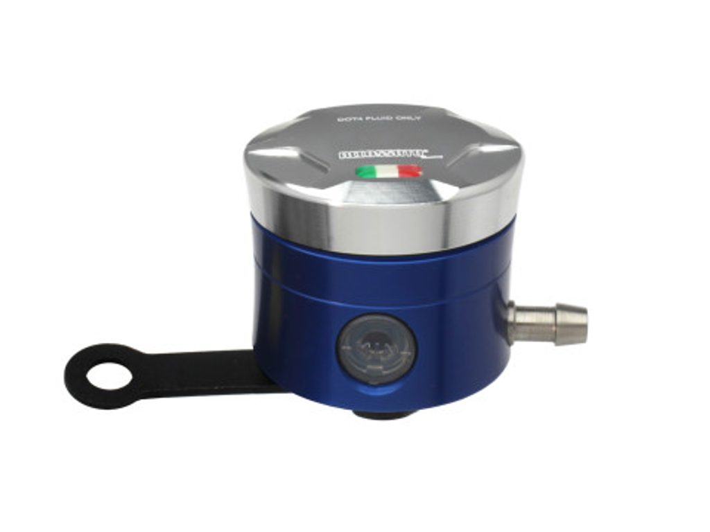 Accossato CNC-worked brake fluid reservoir, capacity of 25 cm3, horizontal oil spill. Straight braket provided. You can choose the colour match of the