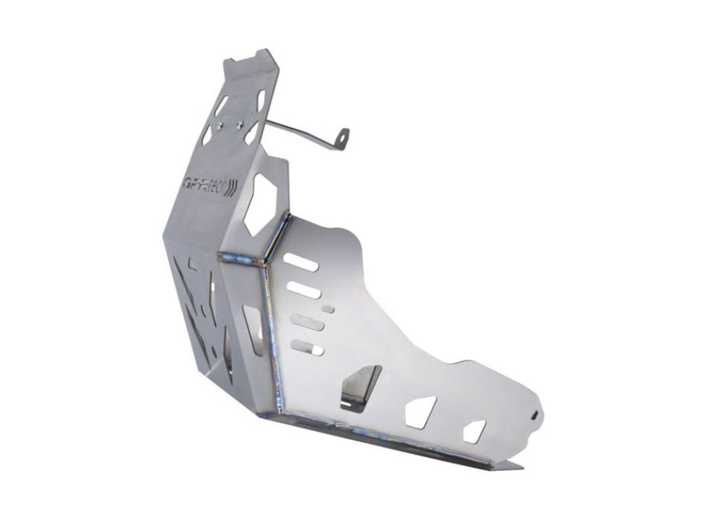 Vyrobeno z titanu třídy 2 o tloušťce 3 mm – tento spodní kryt motoru (skid plate) zajišťuje spolehlivou ochranu motoru, rámu i vodní pumpy. Díky titanovému provedení je o 50 % lehčí než podobné výrobky z hliníku, nevytváří vibrace, pohlcuje část energie nárazů a představuje nejlepší řešení, jak ochránit tvou motorku před kameny a terénními překážkami.