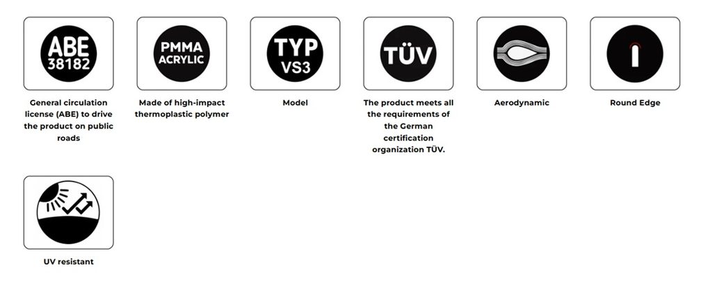 Jejich kompaktní rozměry, mírně menší než originální štít (pokud existuje), poskytují jezdci výraznou ochranu a pocit komfortu, zároveň dodávají sportovní vzhled, aniž by omezovaly zorné pole jezdce.