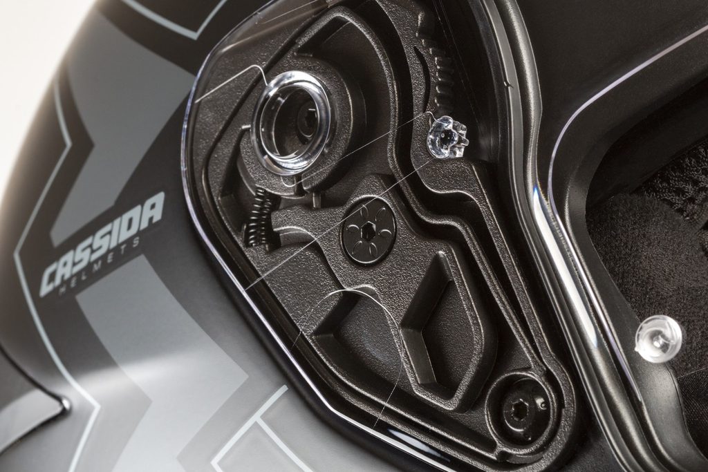 - Systém odnímatelných lícnic Cassida Safety Opening System (Cassida SOS).