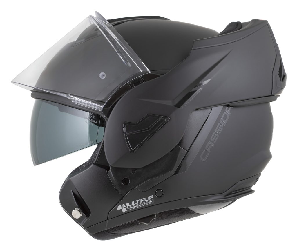 • Dvojí homologace ECE 22.06.P/J pro otevřenou a integrální přilbu s možností fixace výklopné části ve vyklopené poloze pomocí pojistky.