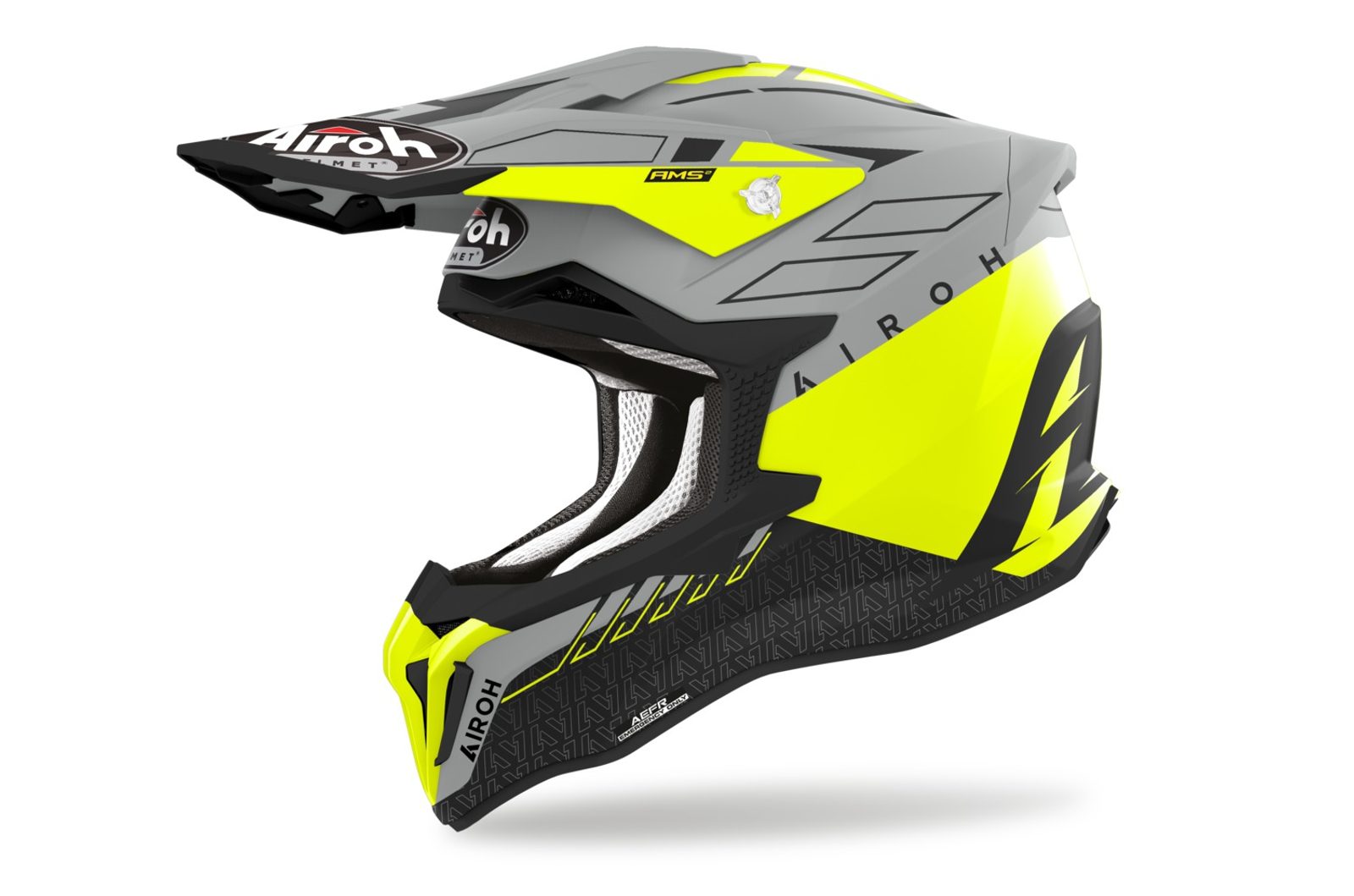 • 2 překrývající se skořepiny s různou hustotou matieriálu se silikonovými elementy mezi nimi pro rozptýlení kinetické energie při nárazu (AMS2: Airoh Multiaction Safety System).