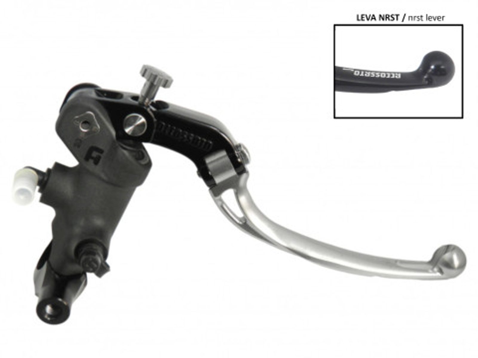 Radiální hlavní brzdový válec ACCOSSATO 19 x 17-18-19 se sklápěcí páčkou, stříbrný