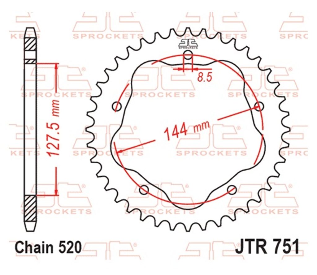 Ocelová rozeta JTR 751-43, vyžaduje unašeč A 750B, 43 zubů, pro řetěz 520 Více informací