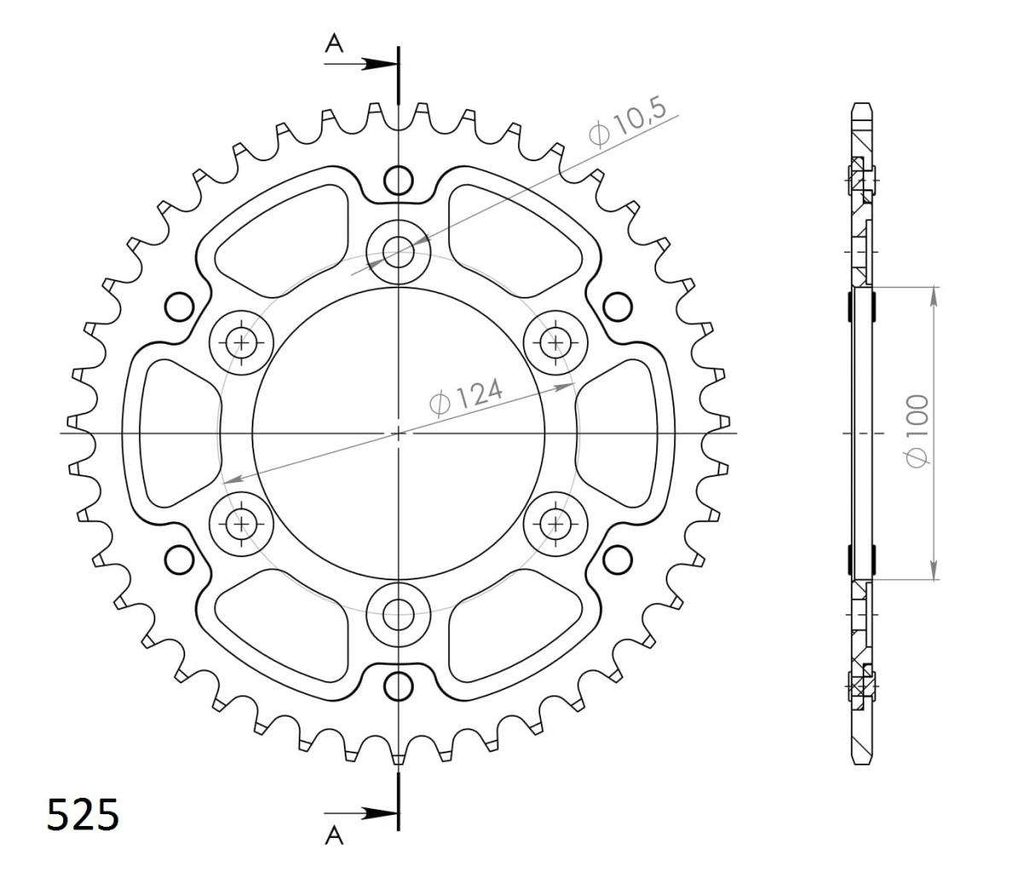 Řetězová rozeta SUPERSPROX STEALTH RST-745:43-SLV stříbrná 43 zubů, 525
