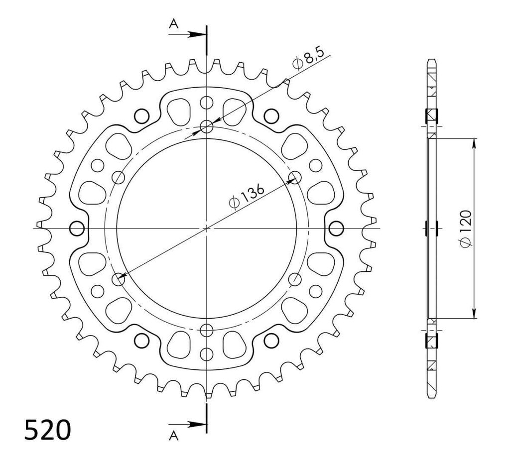 Řetězová rozeta SUPERSPROX STEALTH RST-846:43-SLV stříbrná 43 zubů, 520
