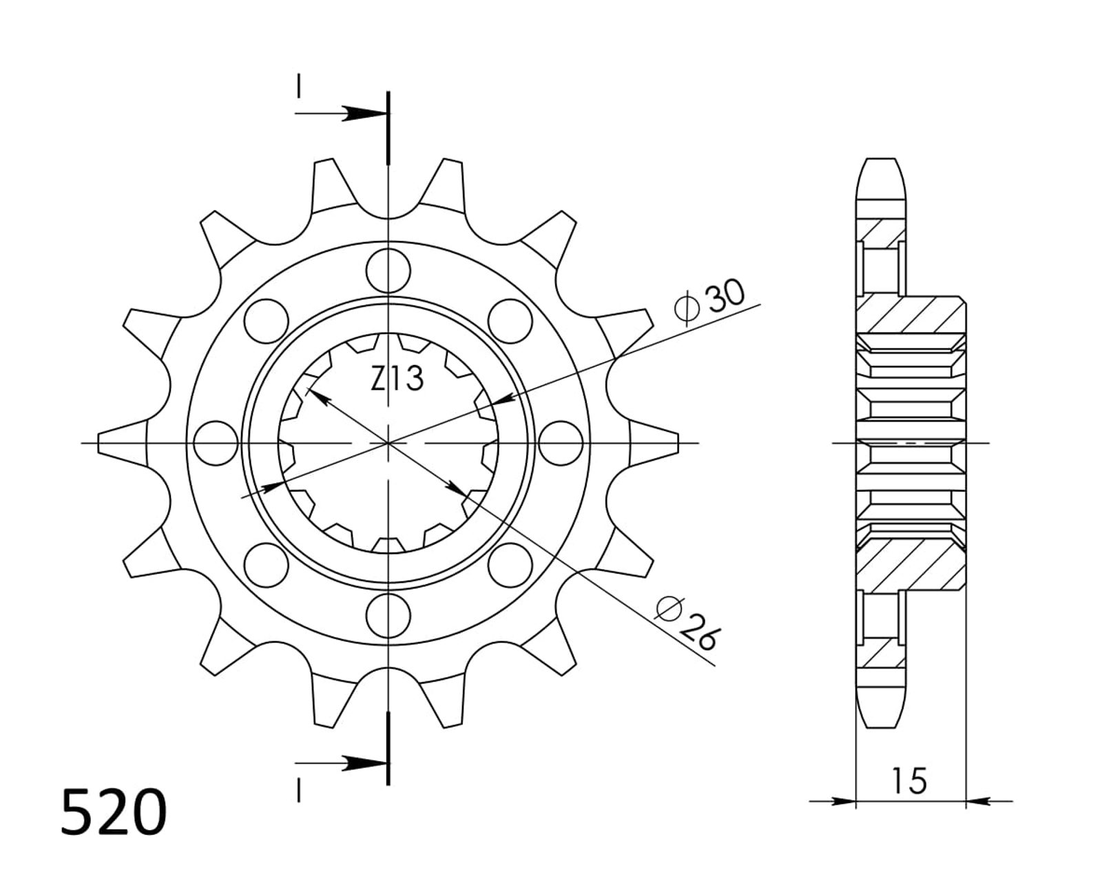 Pevnější zuby = vyšší životnost řetězové sady až o 10%. Kolečko 15z, řetěz 520. Více informací