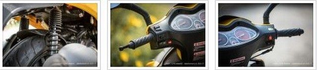 Přestože však jeho doménou jsou kratší přesuny, podvozek je dimenzovaný bytelně a komfortně. Třináctipalcová kola jsou osvědčeným a prověřeným kompromisem mezi jízdní stabilitou, obratností a komfortem, a ani u odpružení výrobce nic nepodcenil. Výhrady lze mít snad jen k tuhosti brzd, která kazí dojem jinak celkem účinné sestavy dvou kotoučovek. Na páčku je třeba vyvinout hodně síly, a ovládání brzd jedním prstem v tomto případě patří do říše snů. Při ceně 36 990 se však s nějakými těmi nedostatky musí počítat, a když na druhou misku vah položíme vedle tuhých brzd ještě slabší motor a průměrnou kvalitu zpracování, pořád z toho vychází férový obchod.