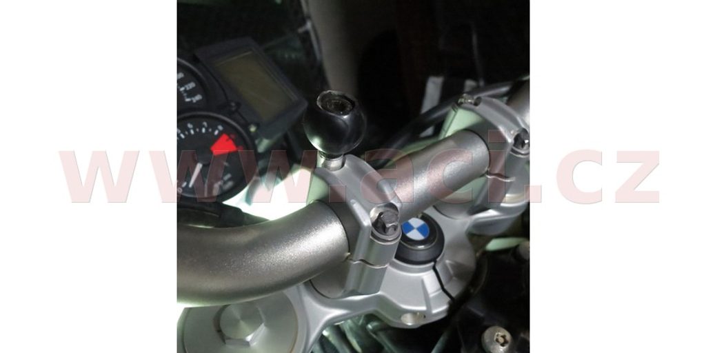 Úchyt na motorku nebo skútr primárně do klemu řidítek s kulovým čepem. Úchyt se připevňuje do závitu libovolného M8 šroubu a nahradí původní šroub. Patentovaný kulový čep je vyroben z velmi kvalitní pryže tak, aby tlumil nárazy a vibrace, které by jinak byly přenášeny na upevněné elektronické zařízení.