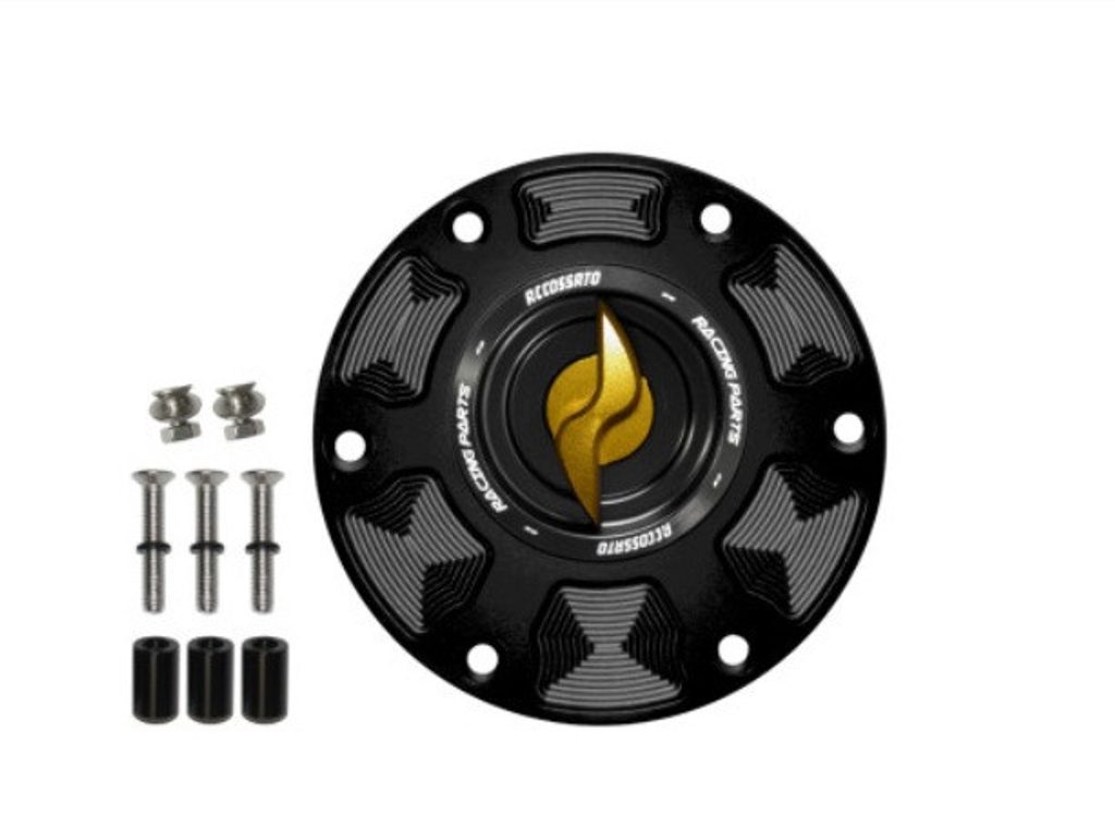 The new Accossato petrol tank cap for Triumph motorbikes has a new , eye-catching design. The quick-release pawl can be in various colours. The Accossato cap is made entirely of cnc-cut aluminium.