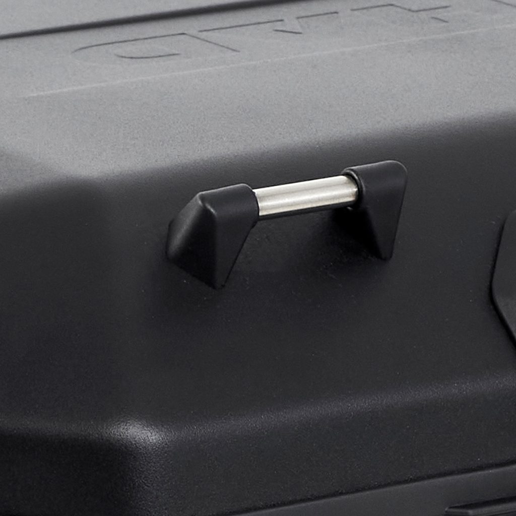 Vrchní kufr Terra TR48 je všestranný, pevný a bezpečný díky plně hliníkovému tělu vyrobenému z kované hliníkové slitiny. TERRA TR48 BLACK je nalakován černým práškovým lakem odolným vůči poškrábání. Díky vnitřnímu vyztuženému dnu je váš náklad v bezpečí a pokud vám vnitřní prostor nestačí, můžete upnout extra náklad k hornímu víku pomocí integrovaných háčků.